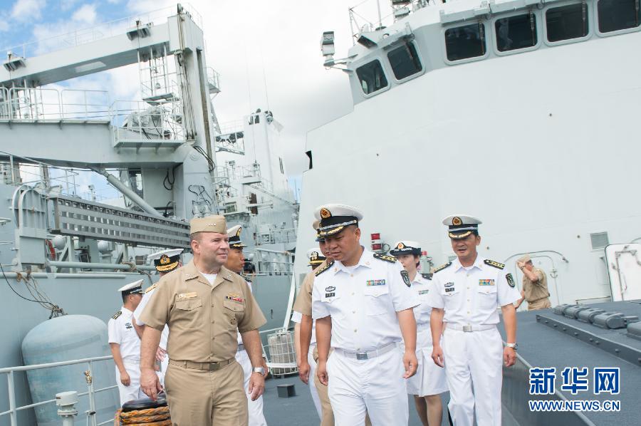 U.S. Vice Adm. Kenneth Floyd, commander of the U.S. Third Fleet, who is also the commander of the RIMPAC-2014 exercise's Combined Task Force, visited the PLA Navy fleet participating in the multinational naval exercise in Pearl Harbor, Hawaii on June 28, 2014.