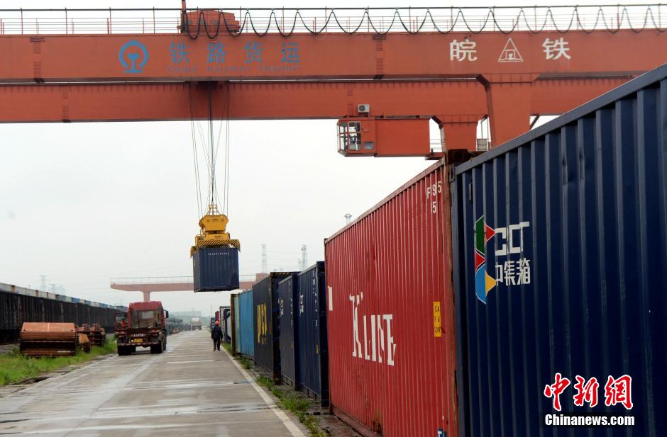 On June 26, the first cargo train along the new Eurasian Continental Bridge sets off from Hefei, central China's Anhui Province. It will cross the Alashankou and arrive in Kazakhstan, Tajikistan and other Central Asian countries in a week, and arrive in Europe in half a month. It signifies that Hefei has the direct cargo train to Central Asia and Europe, and is integrated with the Silk Road economic belt. (CNS Photo) |