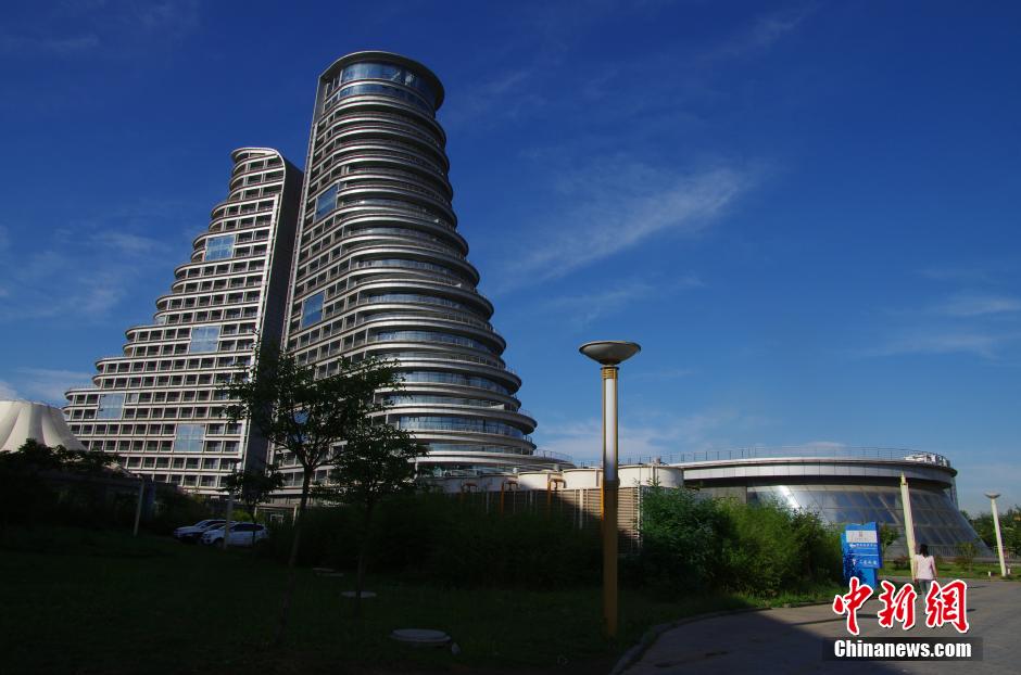 Photo taken on June 28, 2014 shows a hotel shaped like a pair of huge boots in Rizhao city in east China's Shandong province. The local people call it "boot buildings". (Photo/CNS)
