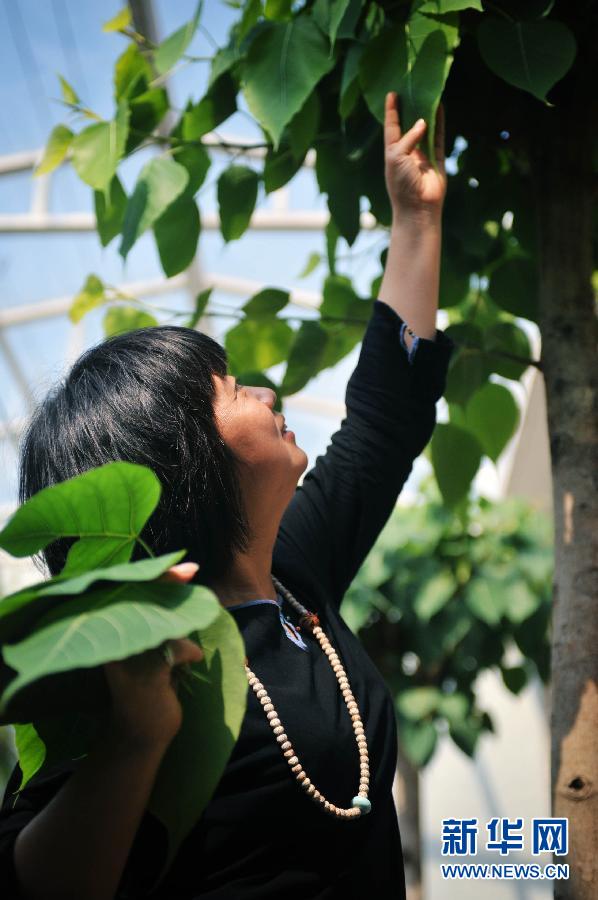 Li picks leaves from a Bodhi tree in a courtyard in Beijing, June 5, 2014.