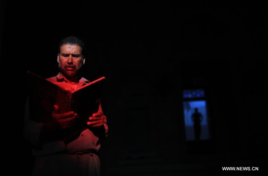 A Palestinian man reads Quran at a Mosque in Gaza City on the third day of the Muslim fasting month of Ramadan, on July 1, 2014. Muslims around the world celebrate Ramadan, the holiest month in the Islamic calendar, in which they abstain from eating, drinking and conducting sexual relations from sunrise to sunset. (Xinhua/Wissam Nassar) |