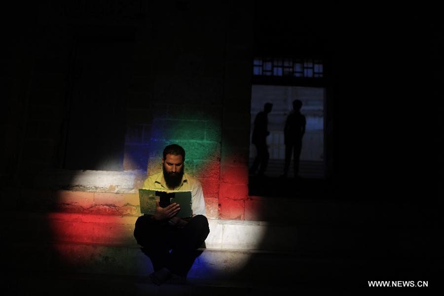 A Palestinian man reads Quran at a Mosque in Gaza City on the third day of the Muslim fasting month of Ramadan, on July 1, 2014. Muslims around the world celebrate Ramadan, the holiest month in the Islamic calendar, in which they abstain from eating, drinking and conducting sexual relations from sunrise to sunset. (Xinhua/Wissam Nassar)