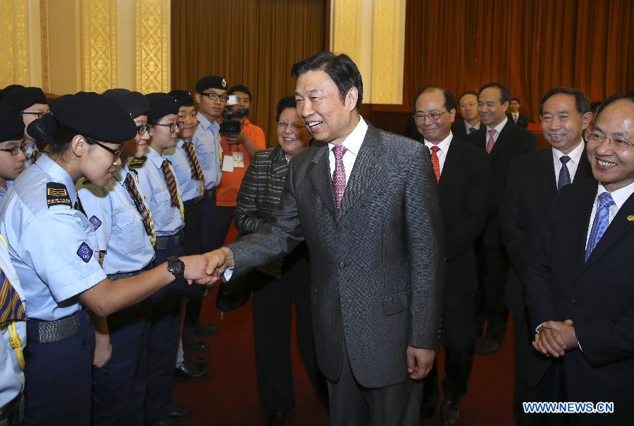 Chinese Vice President Li Yuanchao (C) meets with members of a visiting joint delegation of Hong Kong students at the Great Hall of the People in Beijing, capital of China, July 1, 2014. (Xinhua/Pang Xinglei)