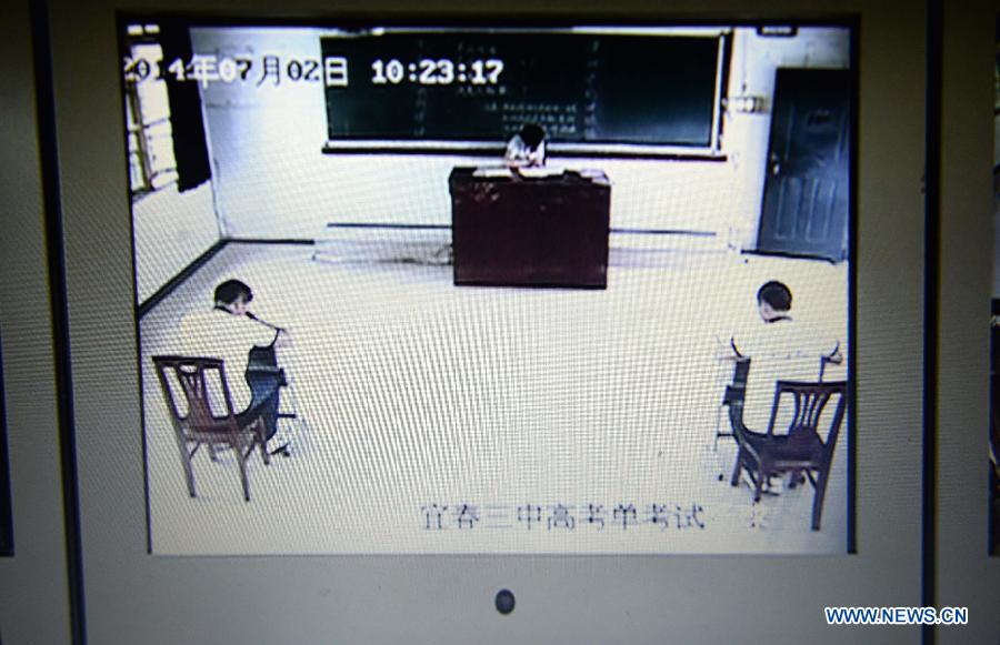 The two students underwent security checks and went through a metal detector before taking the exam. Digital cameras have been installed in the classroom and are recording the test.