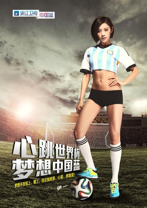 The female reporters from Zhejiang TV dress up in soccer uniforms of the national teams participating in the Brazil FIFA World Cup and pose for photos to celebrate the global soccer tournament. (Photo/CNS)