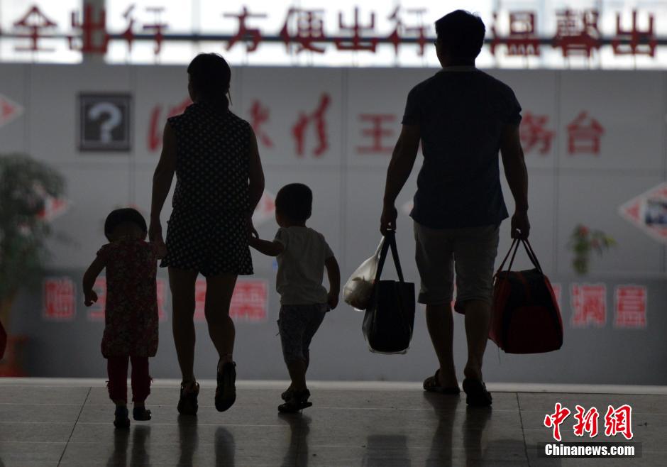 Migrant kids shepherded by their parents at a train station in Fuzhou, capital of southeast China’s Fujian province. (Photo/Chinanews.com)