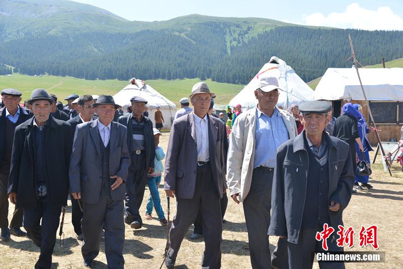 Taiwan woman Li Yongping got married with Harlech, a Kazak herdsman in Xinjiang. They held a wedding along the bank of beautiful Sayram Lake on June 30, 2014. As dowry, the bride’s parents bought 100 sheep for the couple to set up their own livestock-raising business and a flat worth 85,299 U.S. dollars. The groom gave betrothal gifts -- a Akhal-teke horse and two oxen - in return. Every male guest from the bride’s side received a Kazakh hat and a horsewhip, while every female guest got a piece of Kazakh cloth as gift. (CNS/Yu Mingjiang) |
