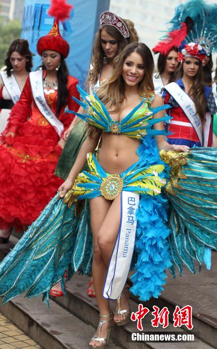 On July 1, 2014, global ambassadors of ecotourism from 42 countries including France, Australia, Panama, and Canada dressed in national costumes gather in Nanjing to raise the curtain of the world tour of culture. They will join promotion events to raise public's green awareness, and show support to the forthcoming 2014 Nanjing Youth Olympic Games during their stay in Nanjing. (Chinanews.com/ Yang Bo)