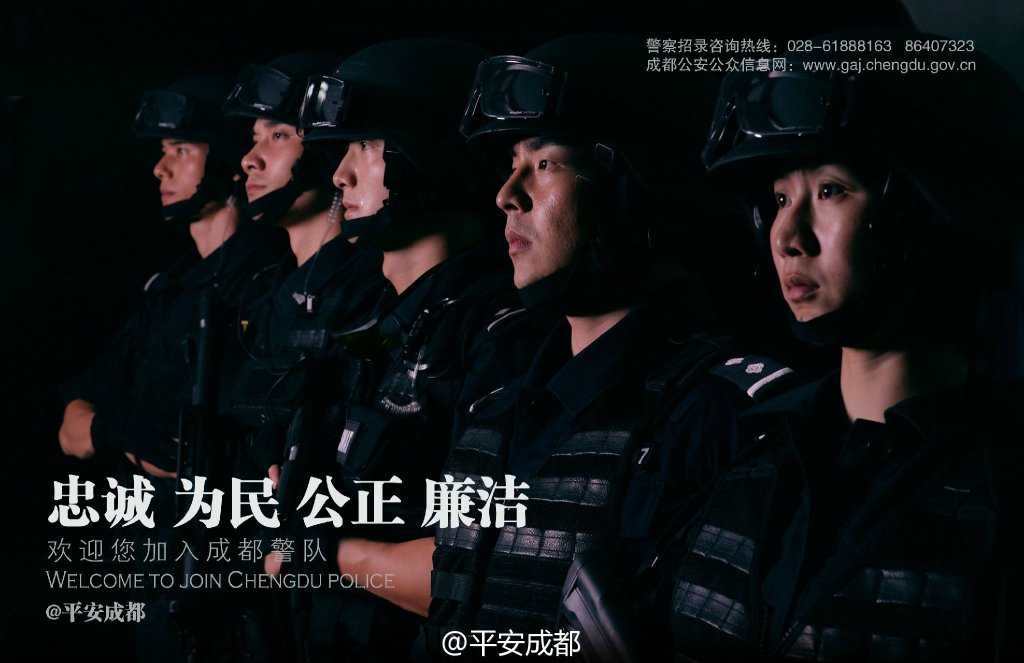 Recruitment promotion pictures posted by Chengdu Public Security Bureau on Sina Weibo, the Chinese equivalent of Twitter. (Photo/Weibo)