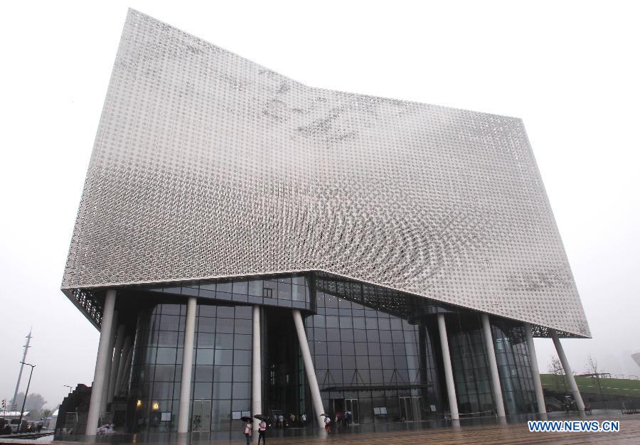 Picture taken on July 4, 2014 shows the exterior of No.1 building which will be used as reception center, visitor center and dining hall of athletes in the Youth Olympic Village in Nanjing, east China's Jiangsu Province. The Nanjing 2014 Youth Olympic games will be held from August 16 to 28, attracting 3808 youth athletes from 204 countries and regions. (Xinhua/Gao Jing) |