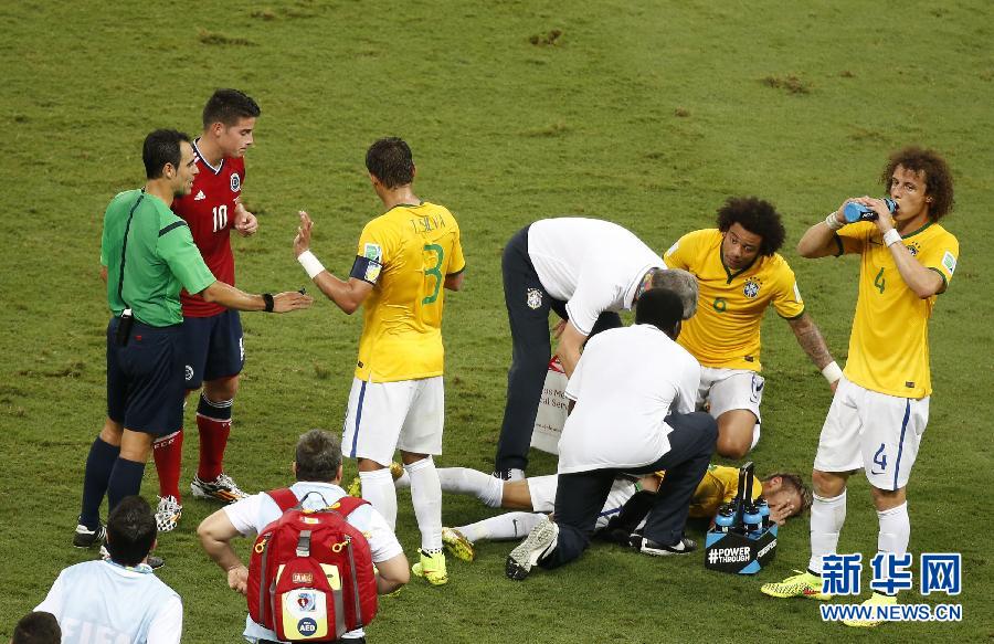 Brazil have suffered a huge setback as team doctor Rodrigo Lasmar confirmed star man Neymar suffered a broken vertebra and is out of the World Cup after he was stretchered off during the quarterfinal defeat of Colombia. (Photo/Xinhua)