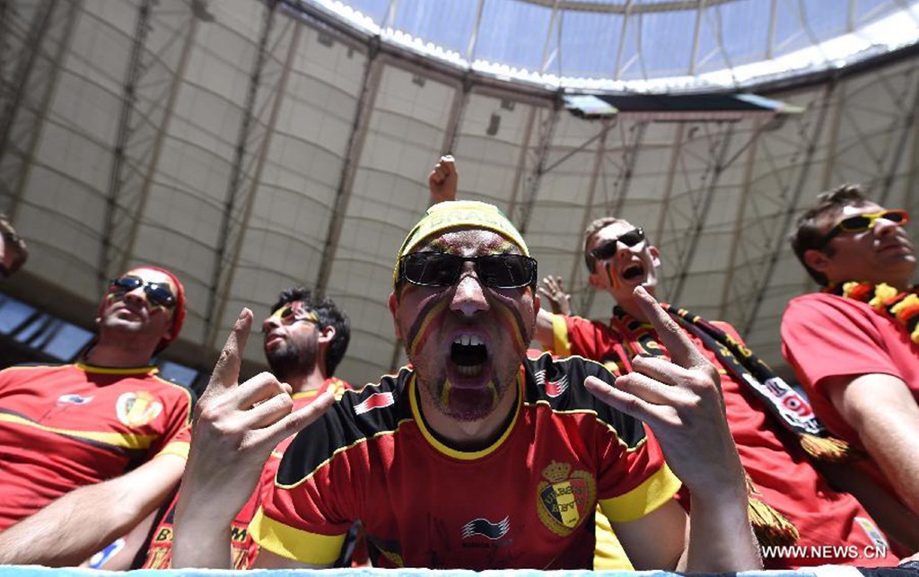 A Belgium's fan poses before a quarter-finals match between Argentina and Belgium of 2014 FIFA World Cup at the Estadio Nacional Stadium in Brasilia, Brazil, on July 5, 2014.(Xinhua/Qi Heng)