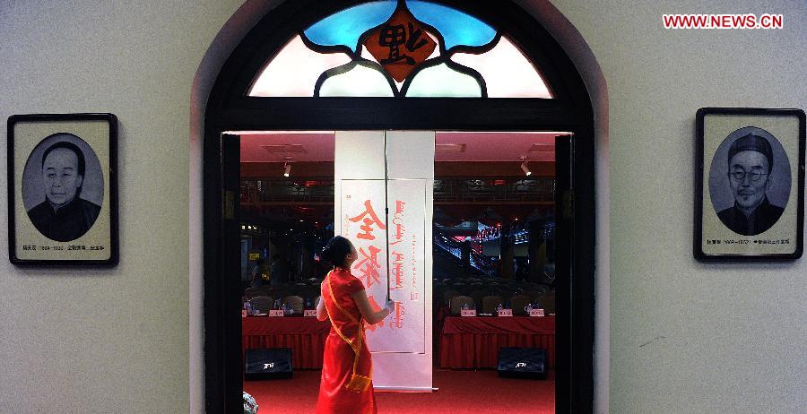 A waitress prepares for a ceremony for the 150th anniversary of Quanjude Beijing Roast Duck Restaurant at its Qianmen Branch in Beijing, capital of China, July 2, 2014.Xinhua/Zhang Yan)