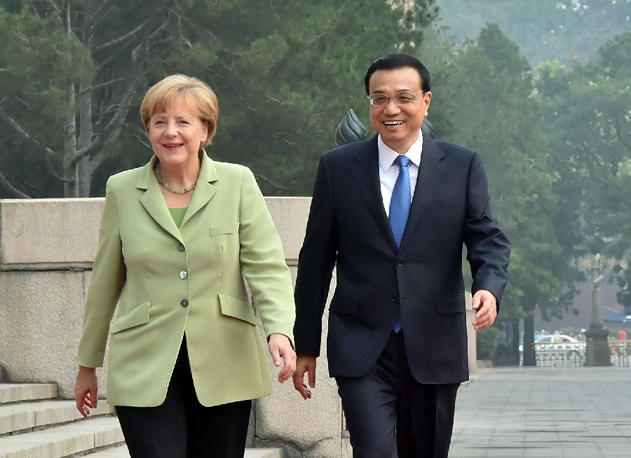 Chinese Premier Li Keqiang (R) holds talks with visiting German Chancellor Angela Merkel in Beijing, capital of China, July 7, 2014. (Xinhua/Li Tao)