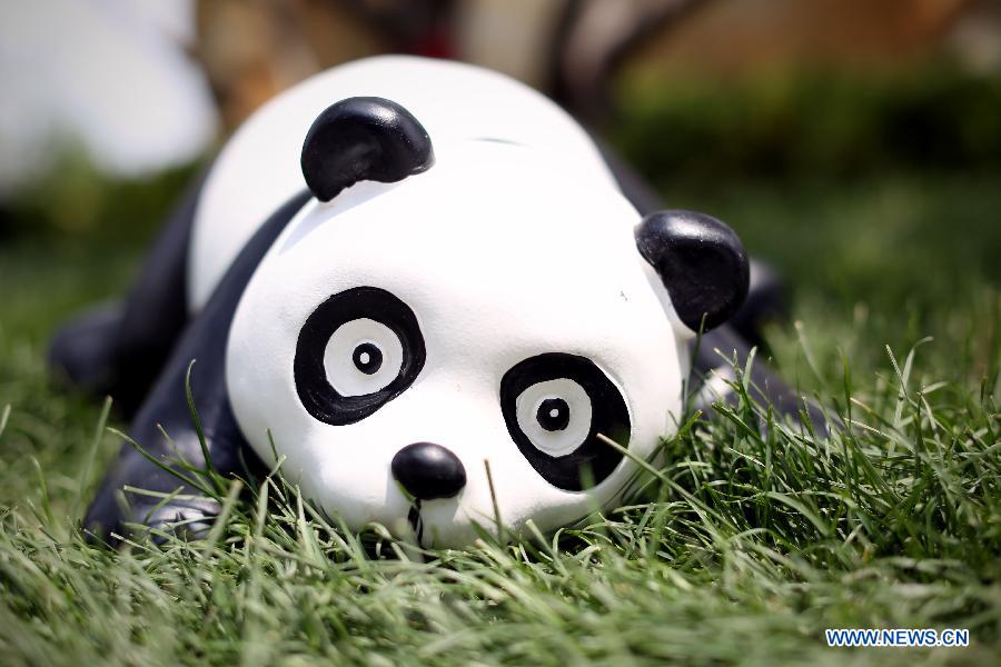 A panda figure is displayed during the open-air show "1st Panda" in Shenyang, capital of northeast China's Liaoning Province, July 7, 2014. A hundred panda figures made from bamboo scraps are shown during the event, which aims at promoting environmental awareness. (Xinhua/Yao Jianfeng) |