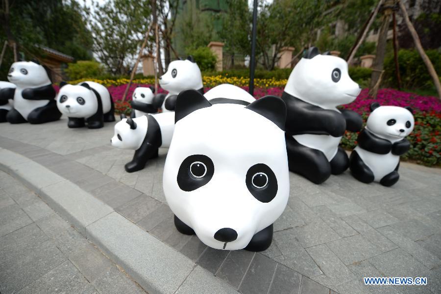 Panda figures are displayed during the open-air show "1st Panda" in Shenyang, capital of northeast China's Liaoning Province, July 7, 2014. A hundred panda figures made from bamboo scraps are shown during the event, which aims at promoting environmental awareness. (Xinhua/Pan Yulong) |