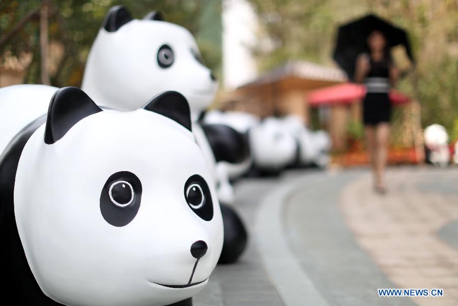 Panda figures are displayed during the open-air show "1st Panda" in Shenyang, capital of northeast China's Liaoning Province, July 7, 2014. A hundred panda figures made from bamboo scraps are shown during the event, which aims at promoting environmental awareness. (Xinhua/Yao Jianfeng) |