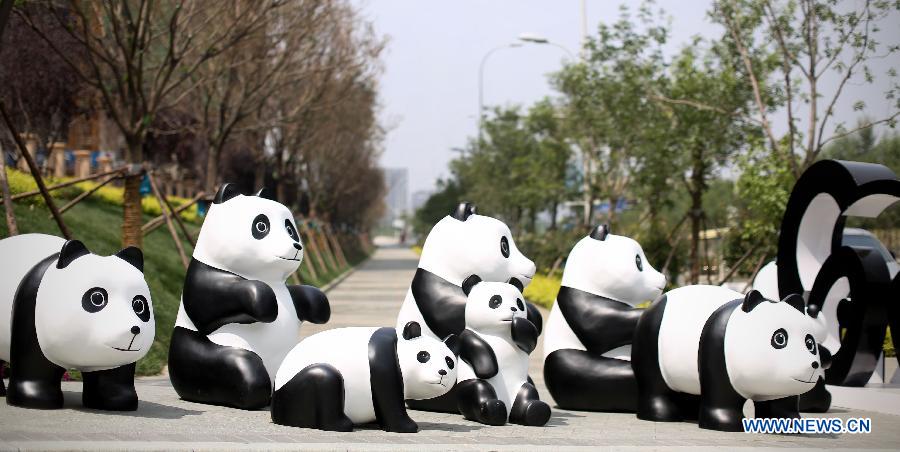 Panda figures are displayed during the open-air show "1st Panda" in Shenyang, capital of northeast China's Liaoning Province, July 7, 2014. A hundred panda figures made from bamboo scraps are shown during the event, which aims at promoting environmental awareness. (Xinhua/Yao Jianfeng) |