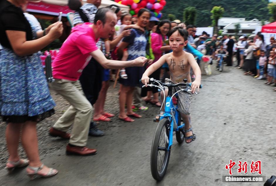 Body-painted participants from China and abroad take part in the cycling race held in Zhangjiajie, central China's Hunan province on July 5, 2014. (Photo/CNS)