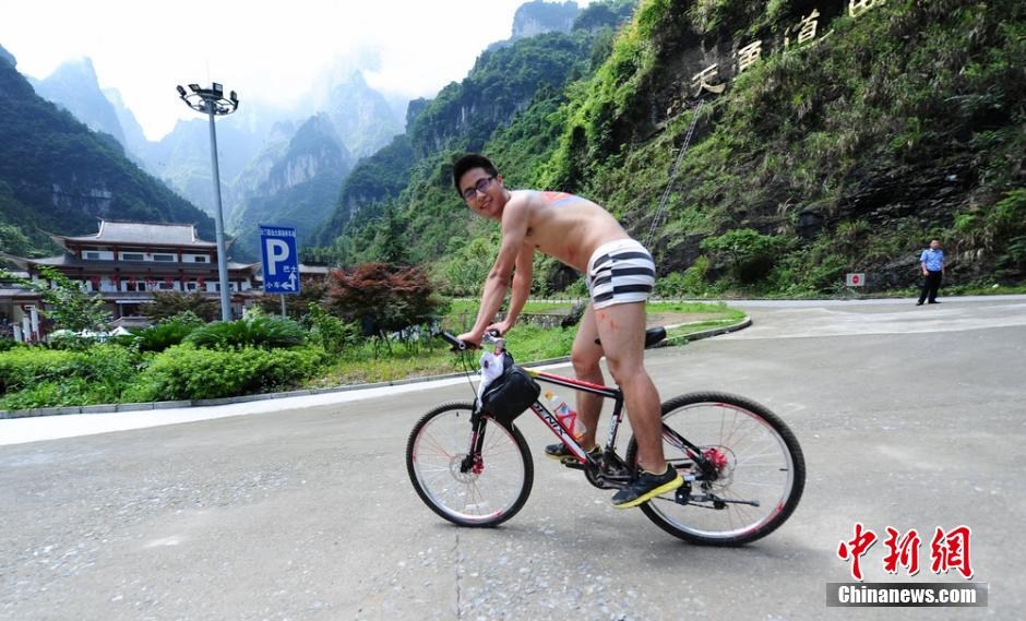 Body-painted participants from China and abroad take part in the cycling race held in Zhangjiajie, central China's Hunan province on July 5, 2014. (Photo/CNS)