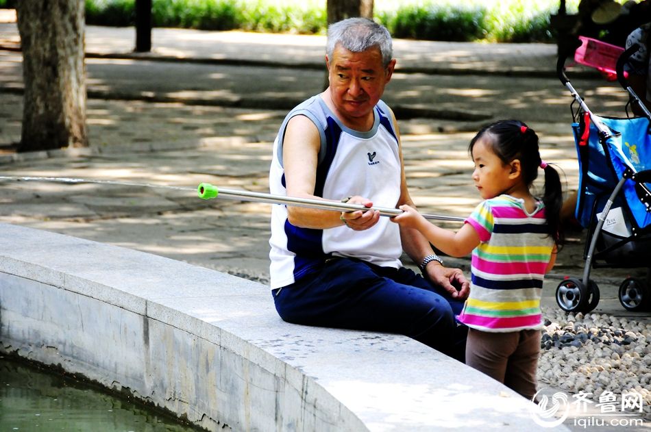 Wang, 67, has to take care of the grandchild when his wife dances. (Photo/iqilu.com)