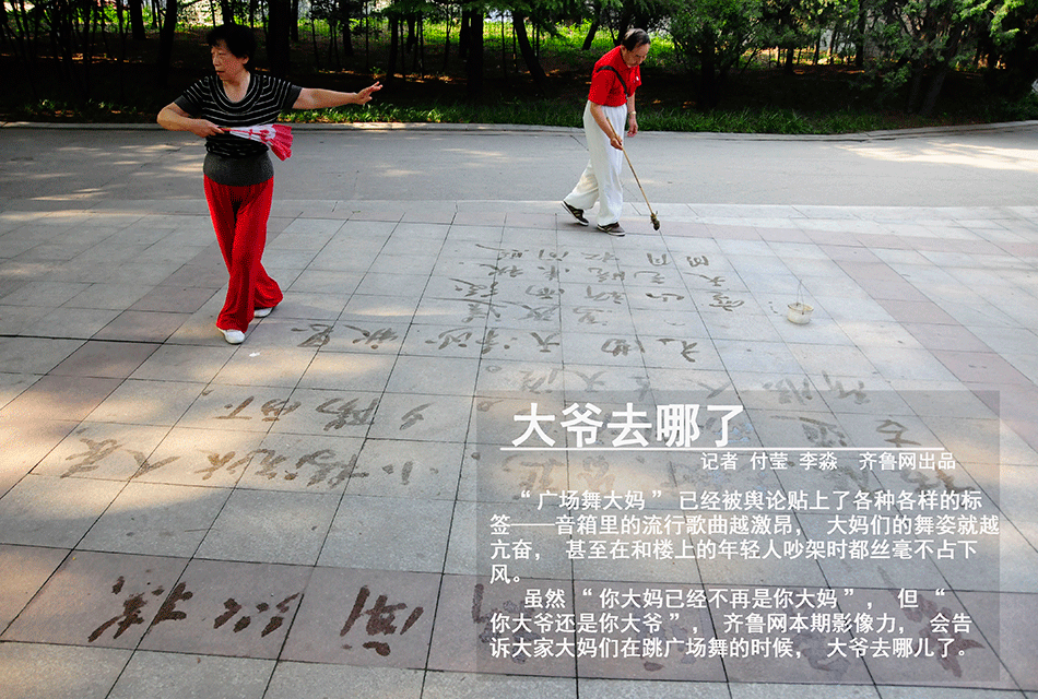 "I count the number of the steps from home to the nearby park every day. It is 1800," says 69-year-old Cao. When his wife dances in the nearby park, Cao practices calligraphy on the ground. (Photo/iqilu.com)