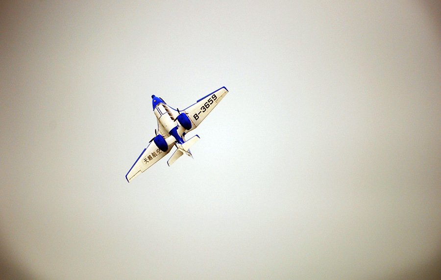 Two BE-103 amphibious air-craft, imported from Russia, make test flight at Faku Caihu airport on July 8, 2014. The aircraft can operate on paved and unpaved runways as well as from inland water reservoirs and offshore waters. (Photo/ Yang Qing)