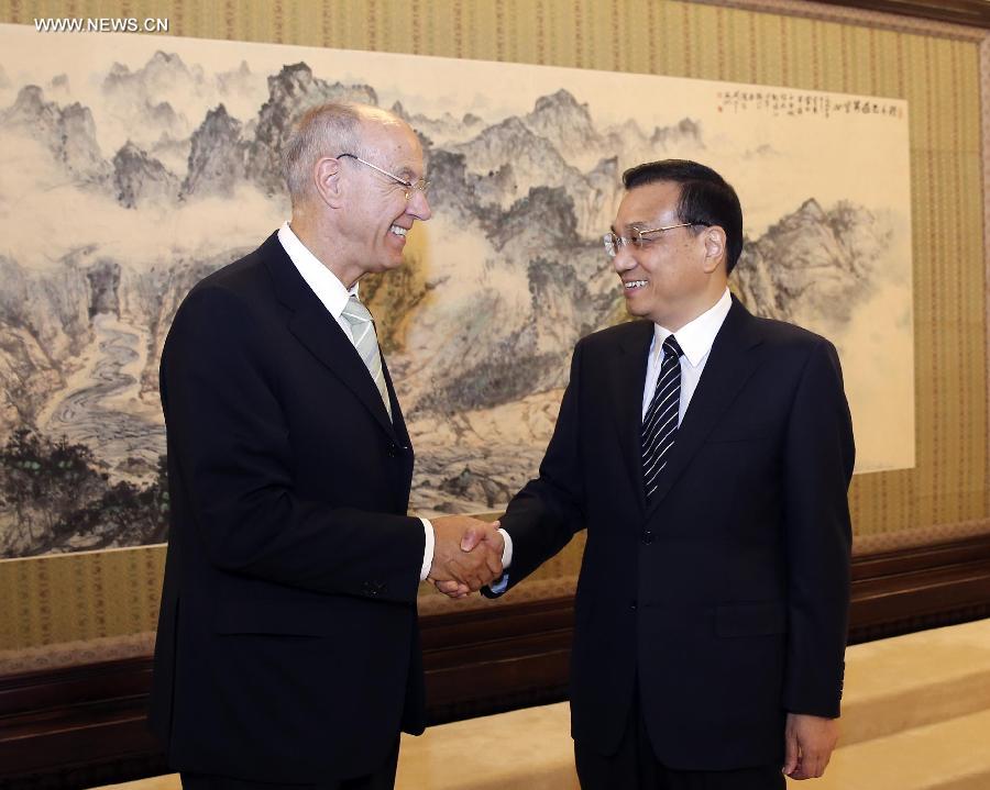 Chinese Premier Li Keqiang (R) meets with Francis Gurry, Director General of the World Intellectual Property Organization (WIPO), in Beijing, capital of China, July 11, 2014. (Xinhua/Ding Lin)
