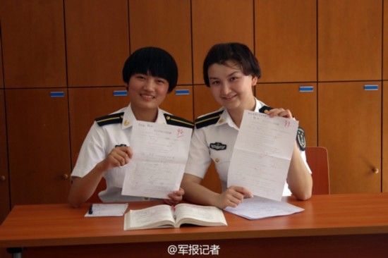 The first three female Uyghur students from Xinjiang Uyghur Autonomous Region have been studying at PLA Dalian Naval Academy for a year until this July. (Photo/Chinamil.com.cn)