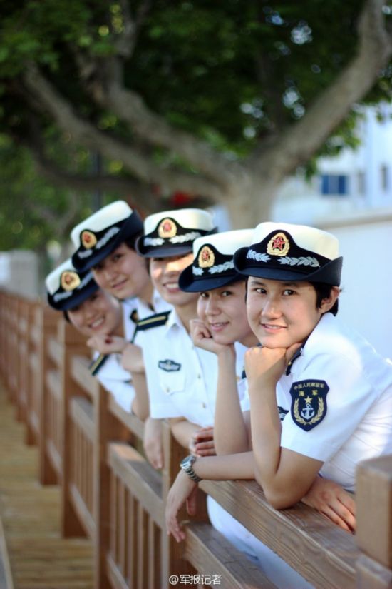 The first three female Uyghur students from Xinjiang Uyghur Autonomous Region have been studying at PLA Dalian Naval Academy for a year until this July. (Photo/Chinamil.com.cn)