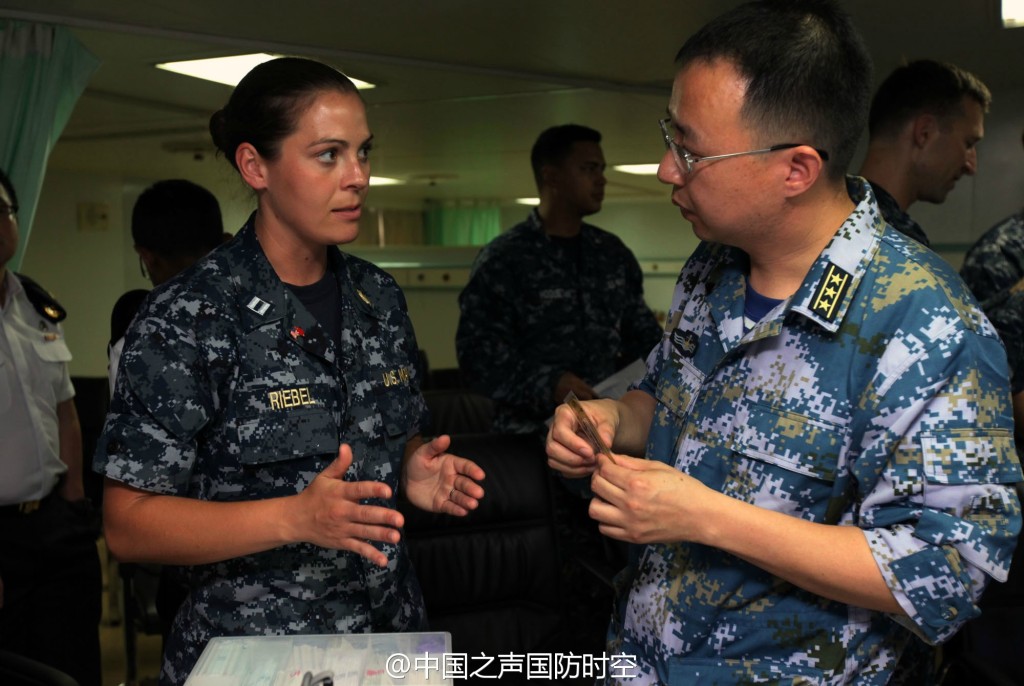 On July 8 (local time), 18 military medical personnel from the United States, Canada and Singapore, who are attending the Rim of the Pacific (RIMPAC) multinational naval exercises, come to the Chinese hospital ship Peace Ark to participate in the exchange and training on traditional Chinese medicine. After experiencing cupping glass, U.S. navy doctor Nicholas Rose said it is very helpful to the rehabilitation of battle wounds. (Photo source: Huanqiu.com)