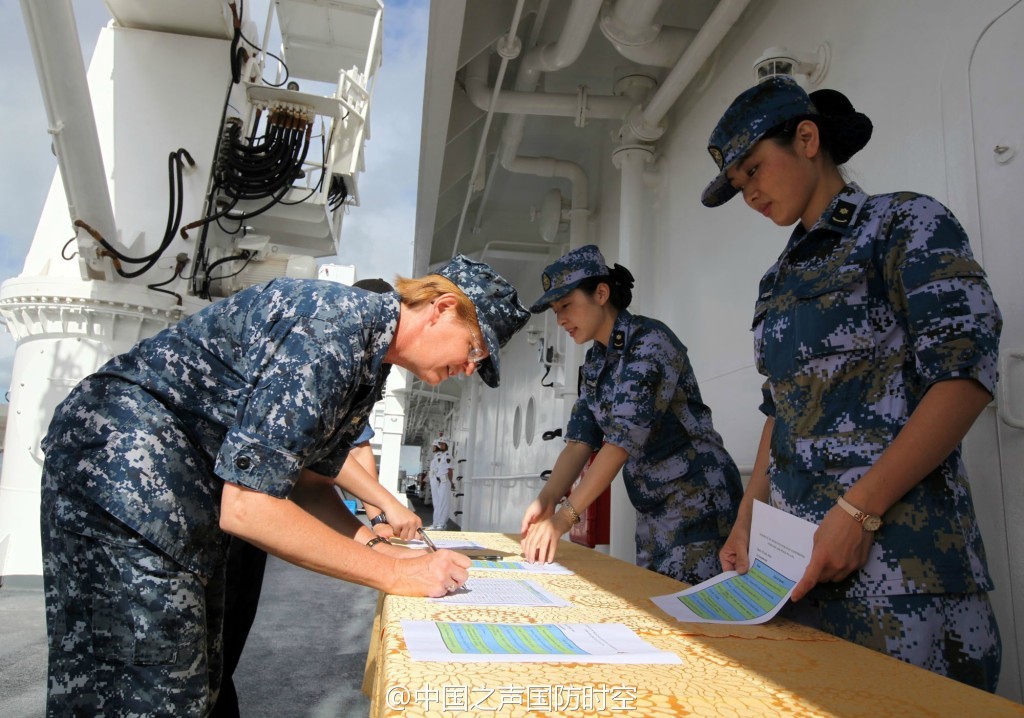 On July 8 (local time), 18 military medical personnel from the United States, Canada and Singapore, who are attending the Rim of the Pacific (RIMPAC) multinational naval exercises, come to the Chinese hospital ship Peace Ark to participate in the exchange and training on traditional Chinese medicine. After experiencing cupping glass, U.S. navy doctor Nicholas Rose said it is very helpful to the rehabilitation of battle wounds. (Photo source: Huanqiu.com)