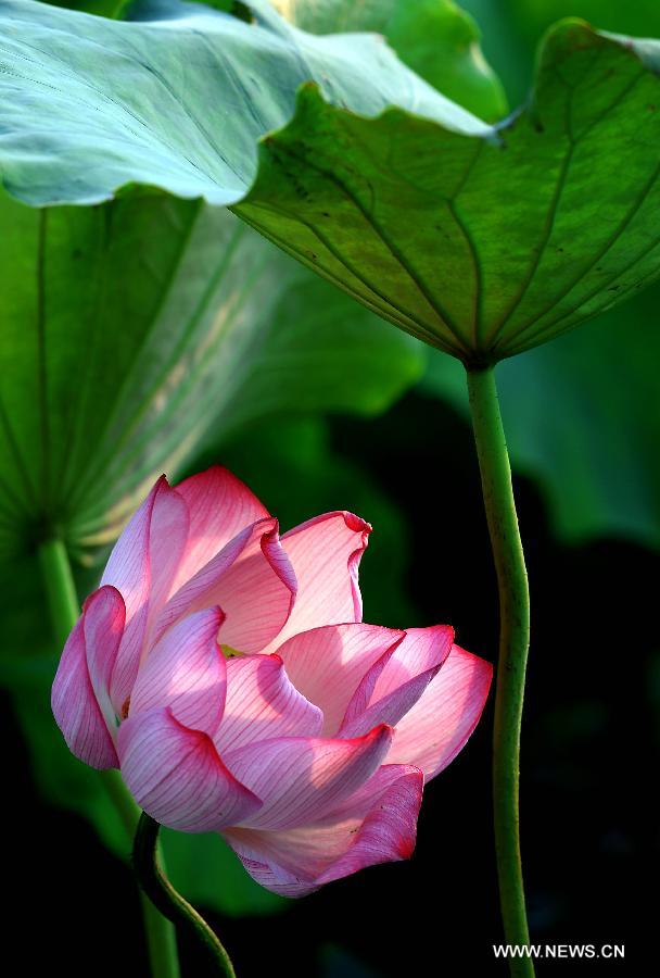 A lotus flower is in full bloom at the Lotus Park in Luoyang, central China's Henan Province, July 13, 2014. (Xinhua/Wang Song)