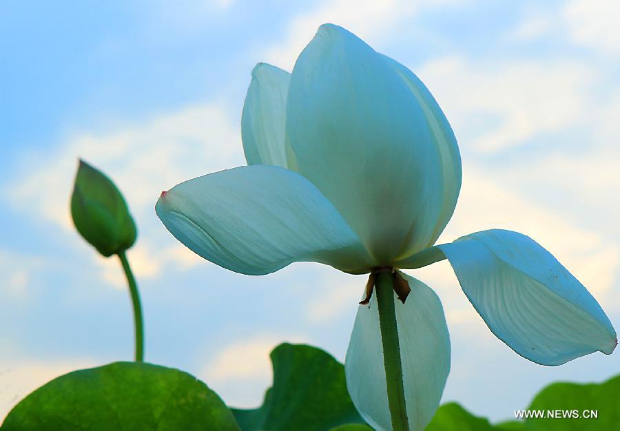 A lotus flower is seen at the Lotus Park in Luoyang, central China's Henan Province, July 12, 2014. (Xinhua/Wang Song)