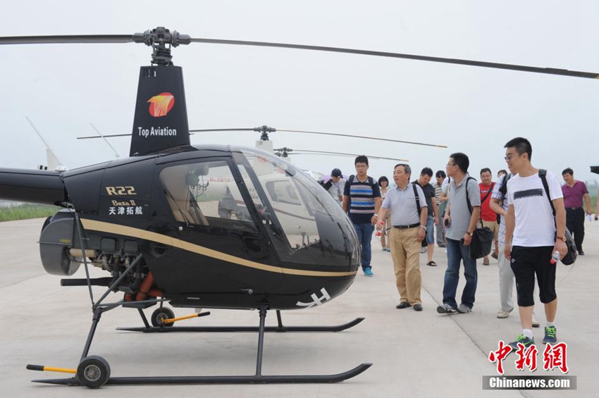 Visitors look at a plane at Tianjin's first private flying club. (CNS/ Tong Yu)