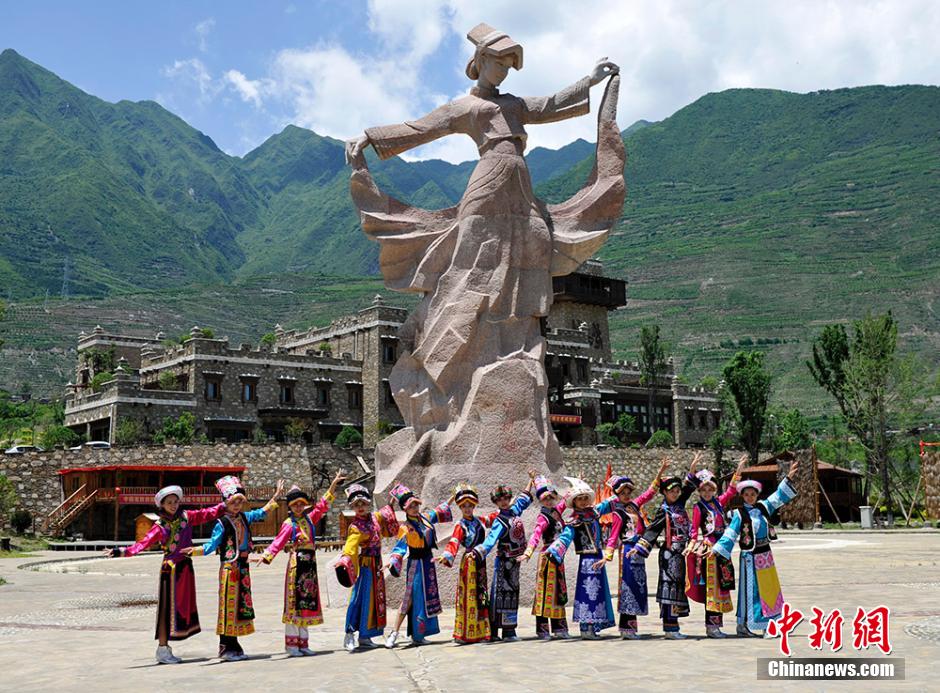 On July 12, 2014, the national fitness team members dressed in the traditional costumes of Qiang girls show both traditional and modern beauty in the run-up to Hong Kong Federation of Bodybuilding and Fitness (HKFBF) International Bodybuilding and Fitness Invitation Championship. (Chinanews.com/ An Yuan) |
