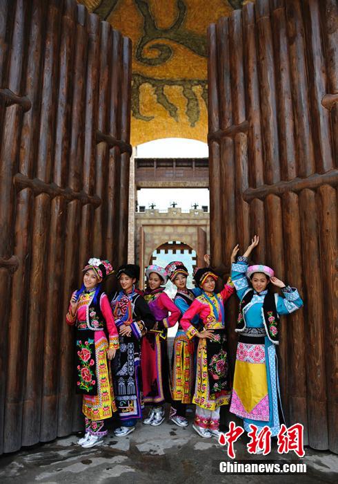 On July 12, 2014, the national fitness team members dressed in the traditional costumes of Qiang girls show both traditional and modern beauty in the run-up to Hong Kong Federation of Bodybuilding and Fitness (HKFBF) International Bodybuilding and Fitness Invitation Championship. (Chinanews.com/ An Yuan)