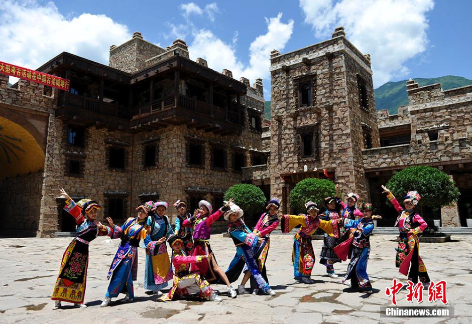 On July 12, 2014, the national fitness team members dressed in the traditional costumes of Qiang girls show both traditional and modern beauty in the run-up to Hong Kong Federation of Bodybuilding and Fitness (HKFBF) International Bodybuilding and Fitness Invitation Championship. (Chinanews.com/ An Yuan) |
