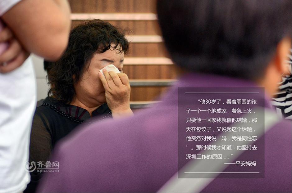 Tears kept rolling down her face as his mom recounted the experience when Ping'an first told her he was gay.