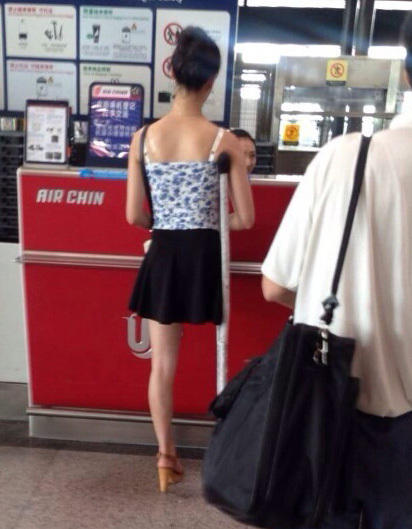 On July 8, 2014, a netizen put the photos of a one-legged woman wearing high heel at the Beijing airport on the Internet, with comment "What a beautiful girl!"