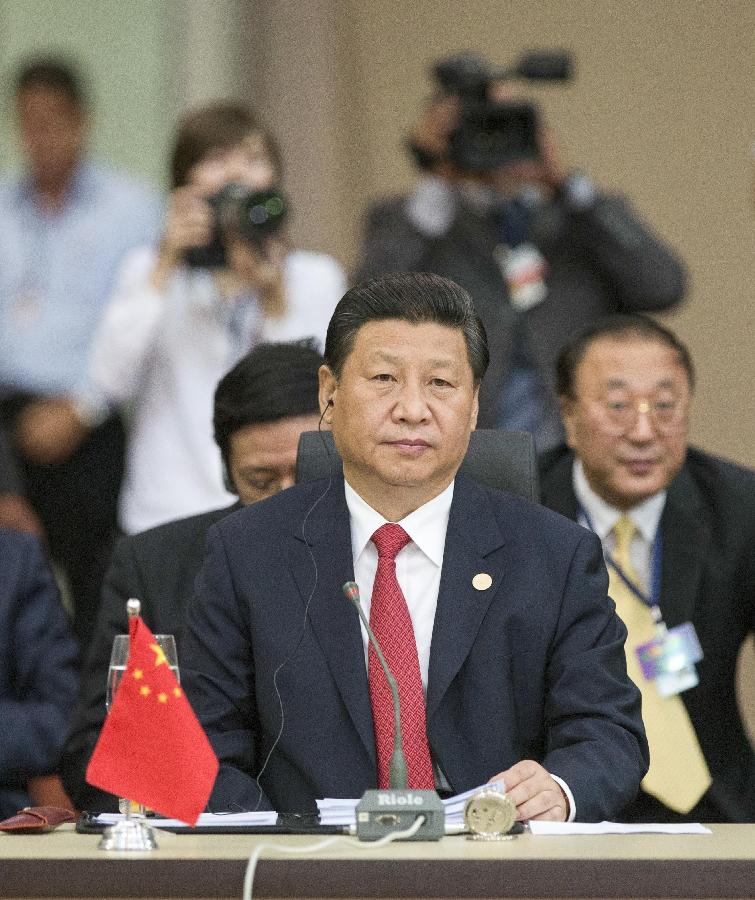 Chinese President Xi Jinping (front) attends the sixth BRICS summit in Fortaleza, Brazil, July 15, 2014. (Xinhua/Li Xueren)
