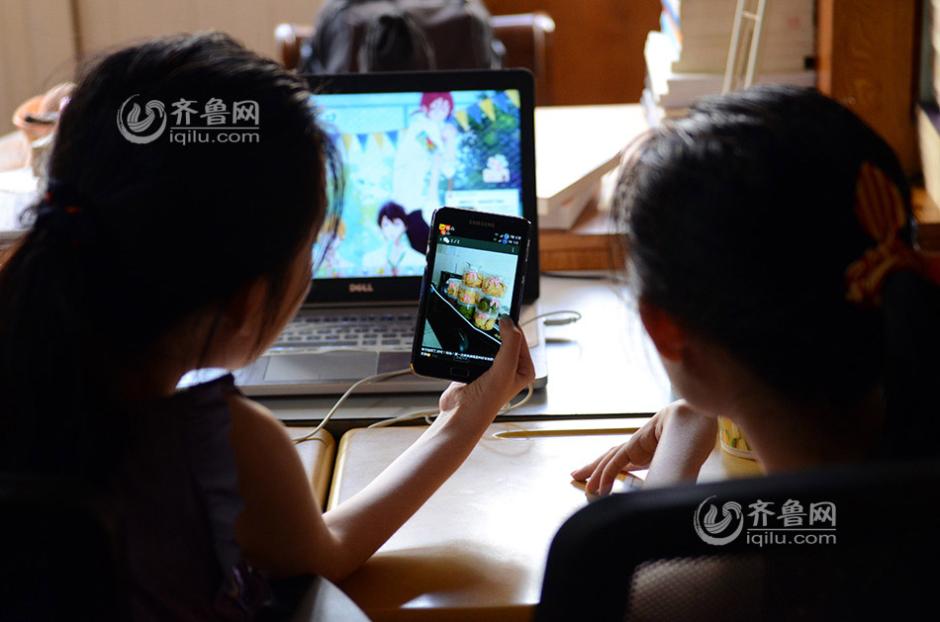 The sisters help their mother sell cakes via WeChat. (iqilu.com/Sun Zhiwen)
