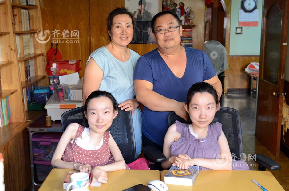 Zhao Wenjing and Zhao Yajing pose for a photo with their parents. (iqilu.com/Sun Zhiwen)