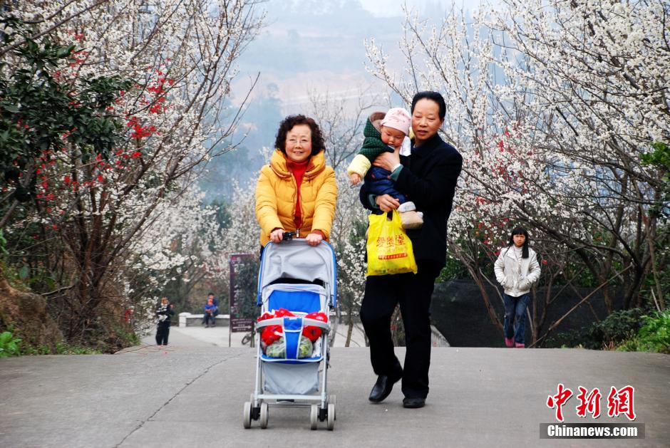 To view beautiful flowers in a spring outing. (Photo/Chinanews.com)