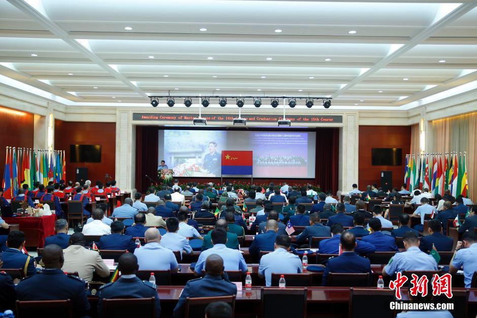 20 foreign military cadets from 16 countries are awarded master’s degree from the PLA Air Force Command College in Beijing July 15, 2014. (Photo/Chinanews.com)