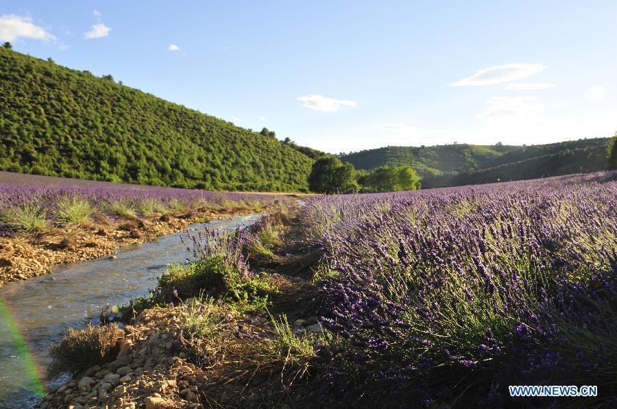 Photo taken on July 10, 2014 shows lavender field at Valensole of Provence, south of France. (Xinhua/Ye Pingfan)