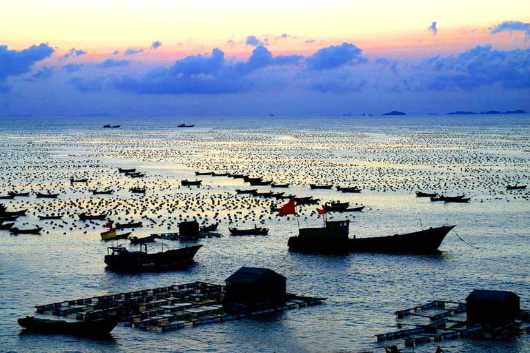 The seawater around the Zhoushan islands is clean and rich with sea mussels. Comprising 1,390 islands and 3,306 reefs, Zhoushan is the largest archipelago of China. The islands can be accessed through a small domestic airport built on the main island. (Source: China.org.cn/bbs.fengniao) |