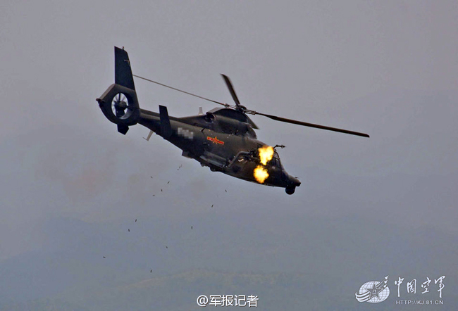 PLA’s armed helicopters open fire during combat drills. (Photo source:chinamil.com.cn)