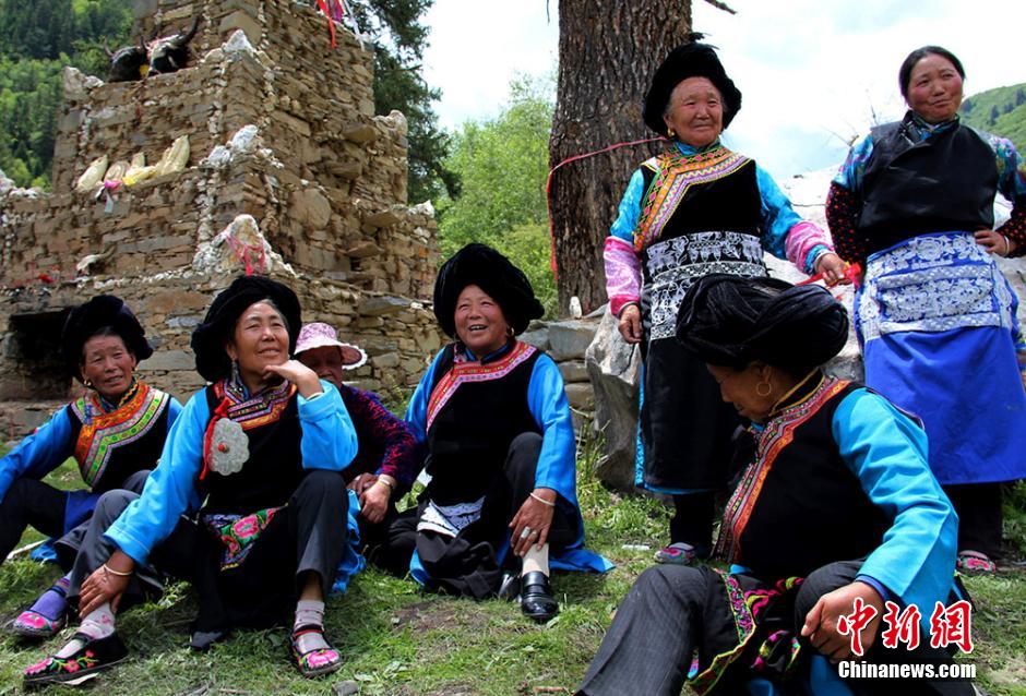 Qiang people hold a solemn ceremony of mountain offer on June 6 of the lunar calendar, praying for good weather and thanking God for blessing respectively in Mao county, Sichuan. The sacrifice event will last till June 27 in lunar calendar. (CNS/ He Qinghai)