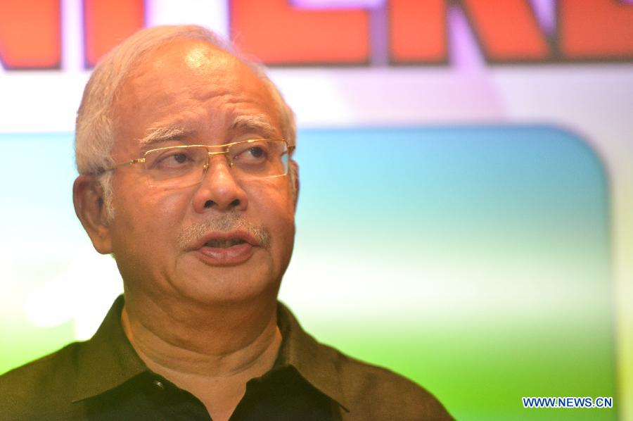 Malaysian Prime Minister Najib Razak attends a press conference at a hotel at the Kuala Lumpur International Airport, in Kuala Lumpur, Malaysia, July 18, 2014. Malaysian Prime Minister Najib Razak said here Friday at a press conference that the MH17's flight route was declared safe by the International Civil Aviation Organization (ICAO), adding that the International Air Transportation Association had stated that the airspace the aircraft was traversing was not subject to restrictions. (Xinhua/Chong Voon Chung) |